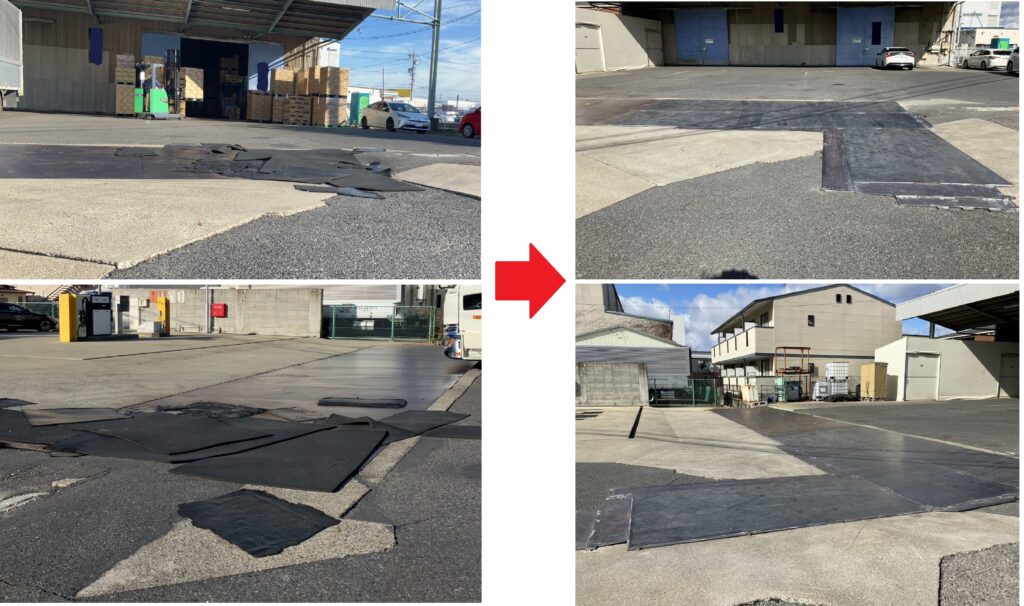 フォークリフトが走行するトラックヤードに段差がありリフトに乗りにくいというご相談をいただき、段差を解消する工事を実施させていただきました。